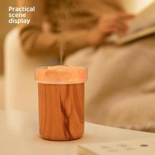エッセンシャルオイルディフューザーアロマセラピーヒマラヤソルトランプクールミスト加湿器ライトウッドグレイン |