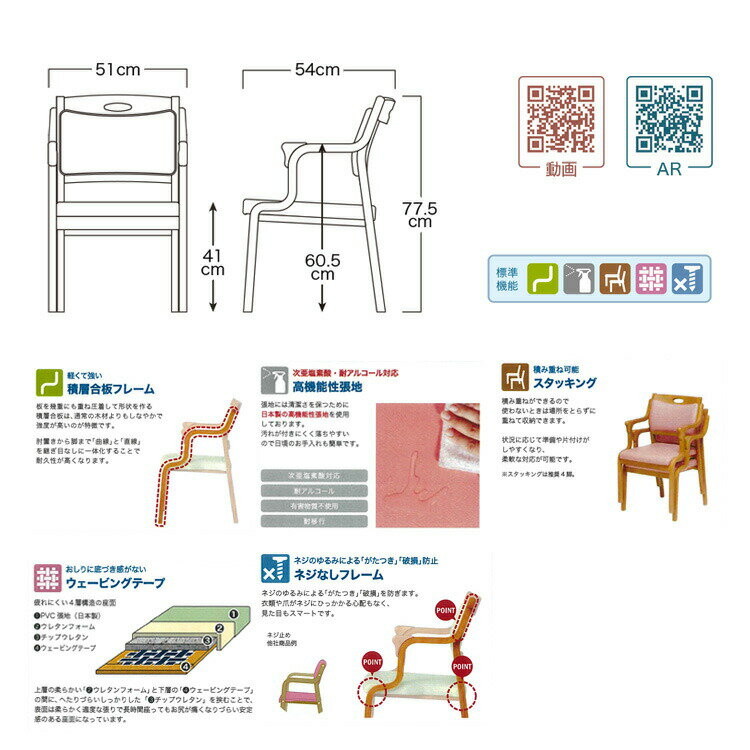 <送料無料> 介護施設・高齢者向け木製スタッキングチェア ライトブラウン Care-AC-111 グリーン ピンク アイボリー ブラウン 1脚入り 安心の強度立ち上がり便利 完成品 病院・介護・福祉施設・デイサービス・グループホーム メーカー直送 |