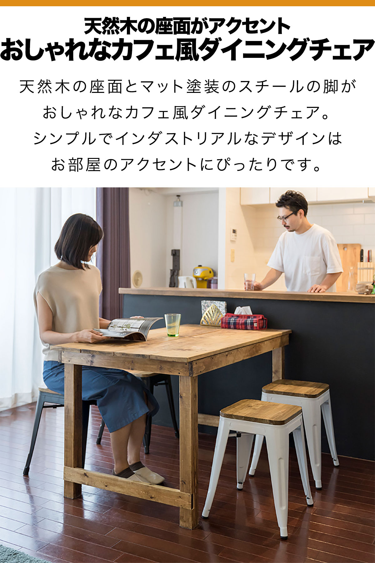 チェア チェアー インダストリアル アンティーク 椅子 おしゃれ カフェ 北欧 ヴィンテージ レトロ 西海岸 ダイニングチェア イス いす 肘なし スチール アイアン 食卓用 天然木 無垢 座面高47cm シルバー ブラウン 1脚 単品 1281チェア |