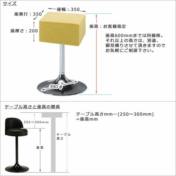 スタンドチェア 椅子 イス いす サイズオーダー 座回転式 スチール脚 クロームメッキ 円盤脚 布張り MT-0637 |