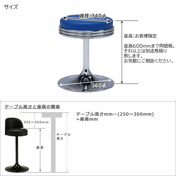 スタンドチェア 椅子 イス いす サイズオーダー 座回転式 スチール脚 クロームメッキ 円盤脚 ビニールレザー MT-0390 |