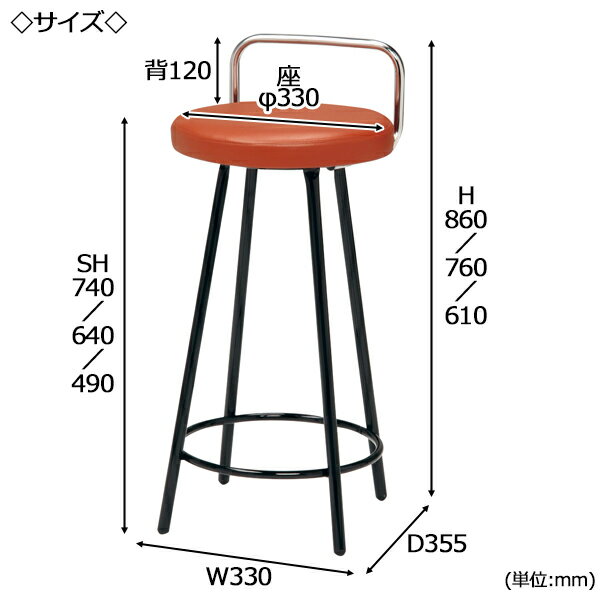 カウンターチェア スタンド椅子 ハイチェア 回転 上下昇降式 背無タイプ スチール脚 クロームメッキ ビニールレザー張り MT-0677 |