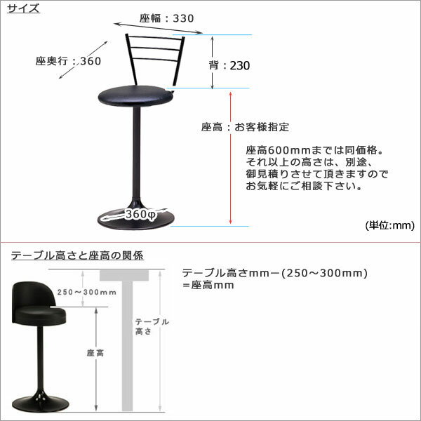 スタンドチェア 椅子 イス いす サイズオーダー 座回転式 スチール脚 ブラック塗装 円盤脚 ビニールレザー MT-0657 |
