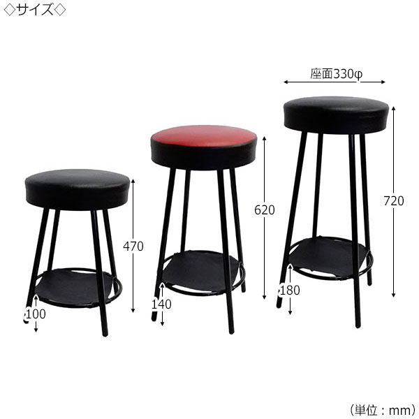 【即日出荷】 ハイスツール カウンターチェア スタンド椅子 バーチェア 食堂イス レザー棚付 スチール脚 ブラック塗装 MT-2496 |