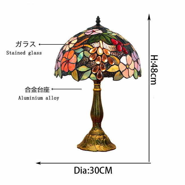30*48CM 葡萄柄ステンドグラスランプ スタンド照明 おしゃれ ガラス 上質 ステンドグラス ランプ アンティーク 小型 LED対応 ギフト 卓上照明 テーブルランプ 卓上照明器具 ナイトランプ ライト プレゼント ギフト 合金台座 |