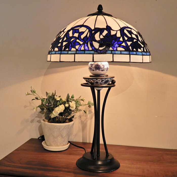 ステンドグラス ランプ テーブルランプ おしゃれ エレガント ステンドガラス スタンド照明 大きめ ブルー ステンドランプ スタンドライト テーブルランプ 新築祝い 母の日 お誕生日 プレゼント【送料無料】ステンドグラスランプ 直径41cm |