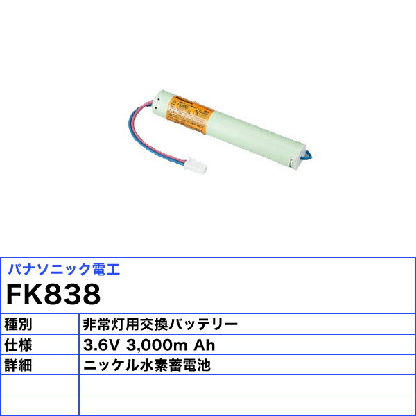 パナソニック FK838 バッテリー 保守用 誘導灯・非常用照明器具用FK646の代替品「送料無料」 |