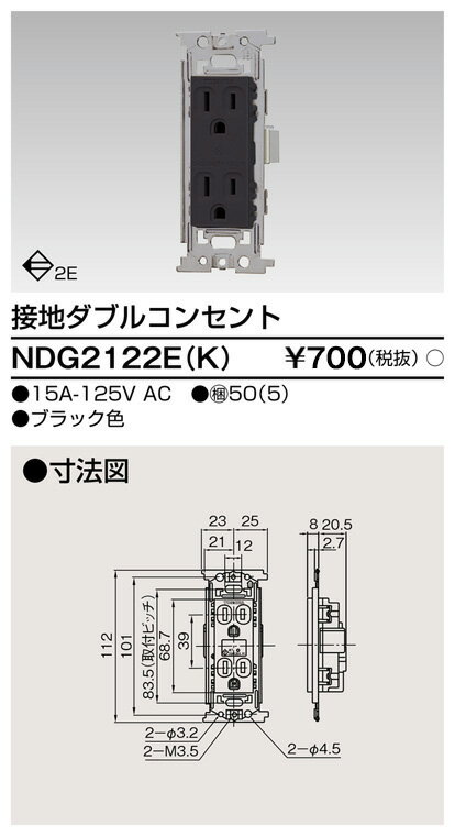 東芝 NDG2122E(K) 接地ダブルコンセント |