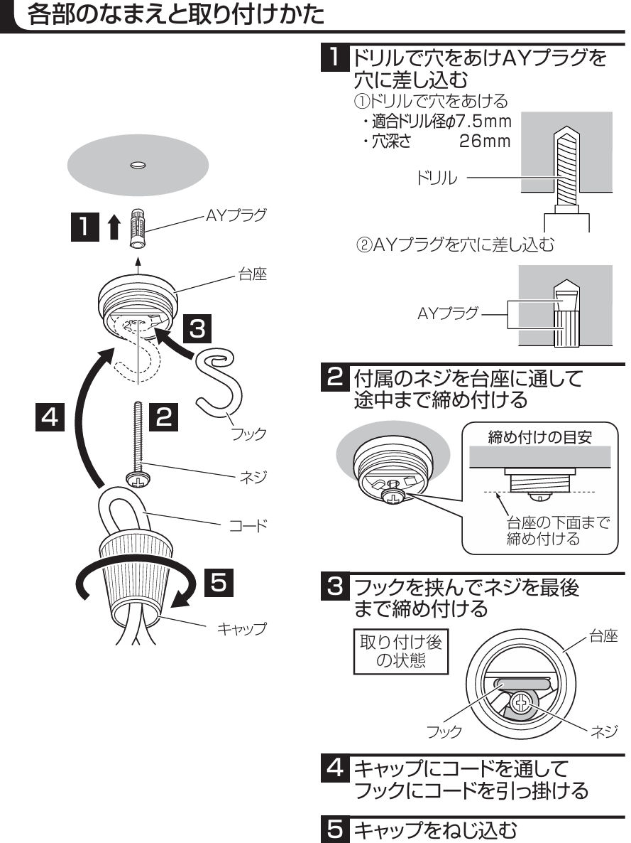 コードセット 1m ホワイト 朝日電器 KP-10H(W) |