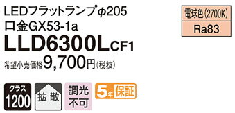フラットランプ LLD6300LCF1(LED) Φ205パナソニック Panasonic |