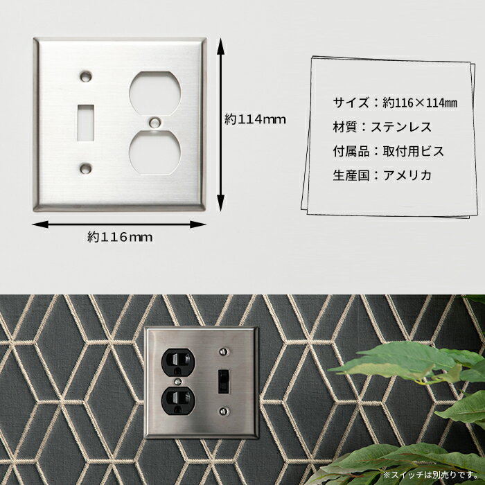 [全商品ポイント5倍×イーグルス感謝祭] コンビプレート 1口スイッチ&2口コンセント ステンレスヘアライン アメリカンコンセント専用 コンセント 取り換え おしゃれ C-F-1 |