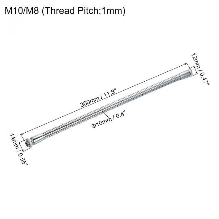 PATIKIL 300mm マイクグースネック M10/M8ねじ 金属 ユニバーサル ホース フレキシブルアーム グースネックチューブ 延長 多機能 DIY用 シルバートーン |