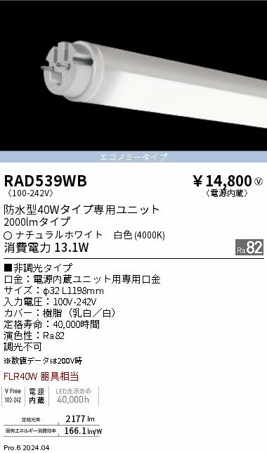 ※メーカー欠品中※遠藤照明 防水型40Wタイプ専用ユニット RAD539WB |