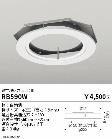 遠藤照明 RB590W リニューアルプレート 埋込穴200用 |