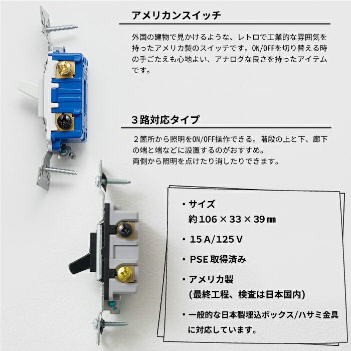 [全商品ポイント5倍×イーグルス感謝祭] 3路スイッチ ホワイト ブラック アメリカンスイッチ 電気 かっこいい 男前インテリア 工業 工場のような スイッチ 付け替え 取り換え 2か所でON/OFF おしゃれ C-F-1 |