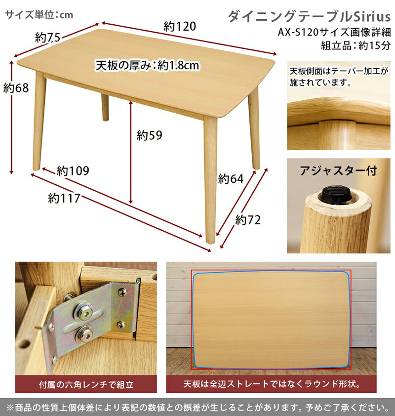 [5%OFFクーポン] 120×75 ダイニングテーブル テーブル 木製 シンプル テーブル ダイニングテーブル 幅120 角丸 長方形 アジャスター付き 4人掛け 北欧風 テレワーク 木 おしゃれ 食卓テーブル 韓国インテリア 一人暮らし カフェ風 天然木風 木目調120cm Sirius 西濃運輸 |