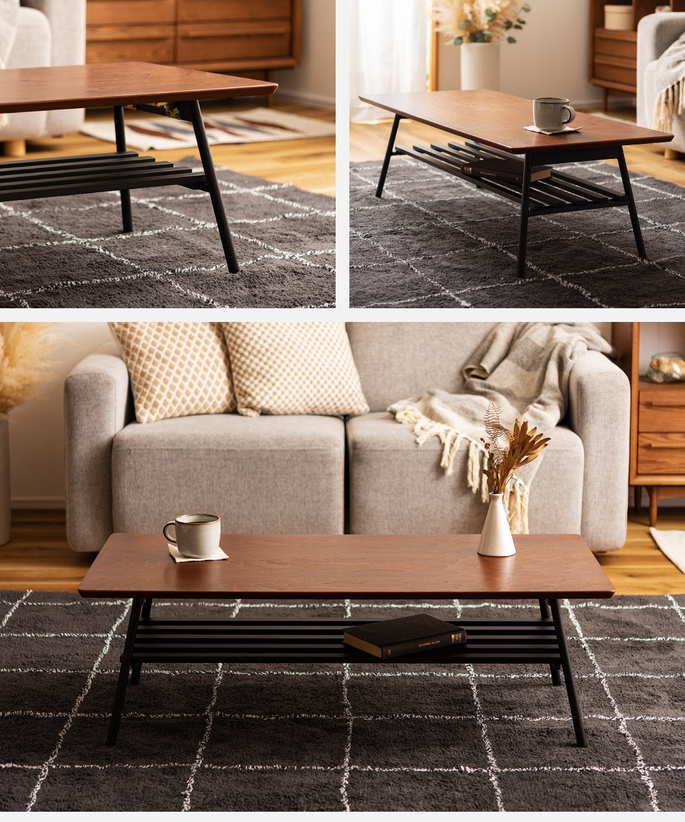折りたたみテーブル 2WAY 幅105cm ローテーブル センターテーブル コーヒーテーブル 折り畳みテーブル 棚外せる おしゃれ 木製 天然木 棚 収納 スチール脚 シンプル 一人暮らし 軽い ウォールナット ナチュラル 省スペース 新生活 |