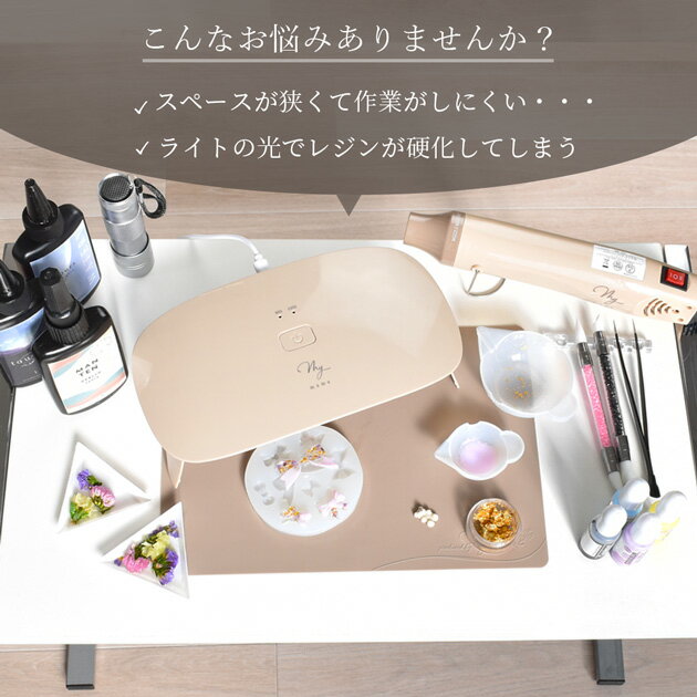 【先着150円OFFクーポン】レジンのための小さな 作業台 全2色 ■ レジン LED ライト 遮光 硬化 スタンド テーブル シリコン マット ワーク ベンチ クラフト ネイル 便利 道具 折りたたみ 作家 ハンドメイド 手作り 手芸 MYmama ■ |