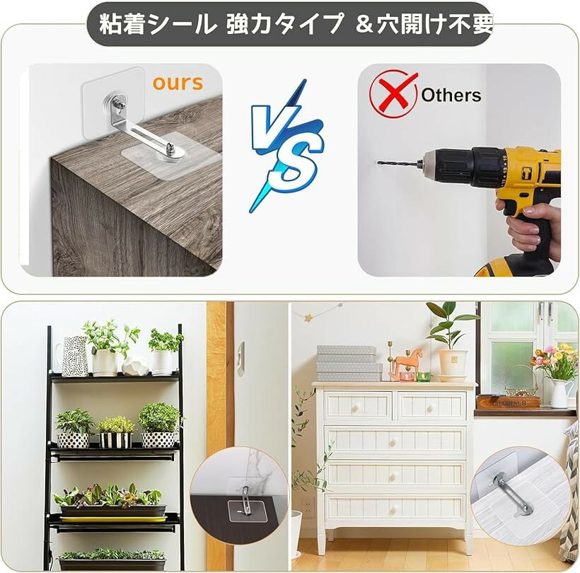 家具転倒防止 セット 強力タイプ 穴開け不要 転倒防止器具 地震対策 家具転倒防止 棚 など対応 防災グッズ 家具固定用 落下防止 耐震ストッパー |