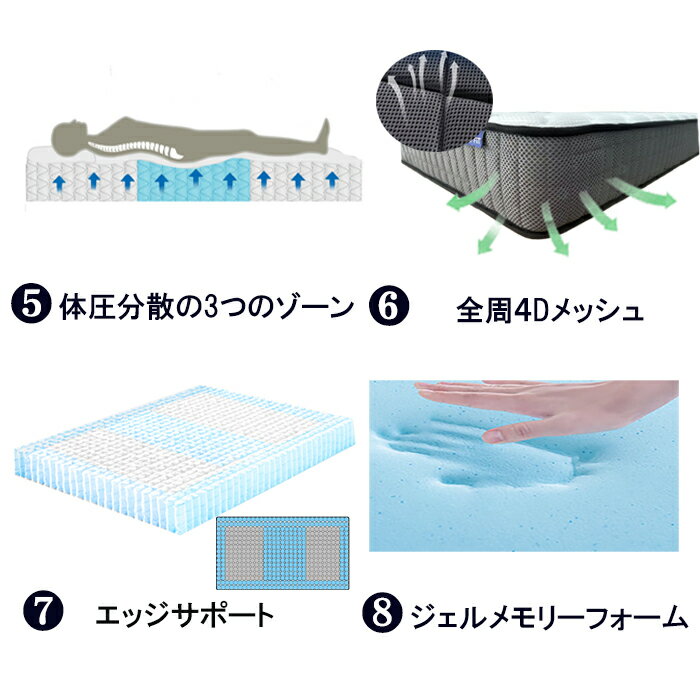 マットレス ダブル シングル セミダブル 26cm ポケットコイル 寝返りサポート 高耐久 コイルマットレス 4Dメッシュ3ゾーン 体圧分散マットレス シングルマットレス マットレス厚い 抗菌防臭 通気性 腰痛対策 竹炭ウレタン スプリングマットレス Luxe |