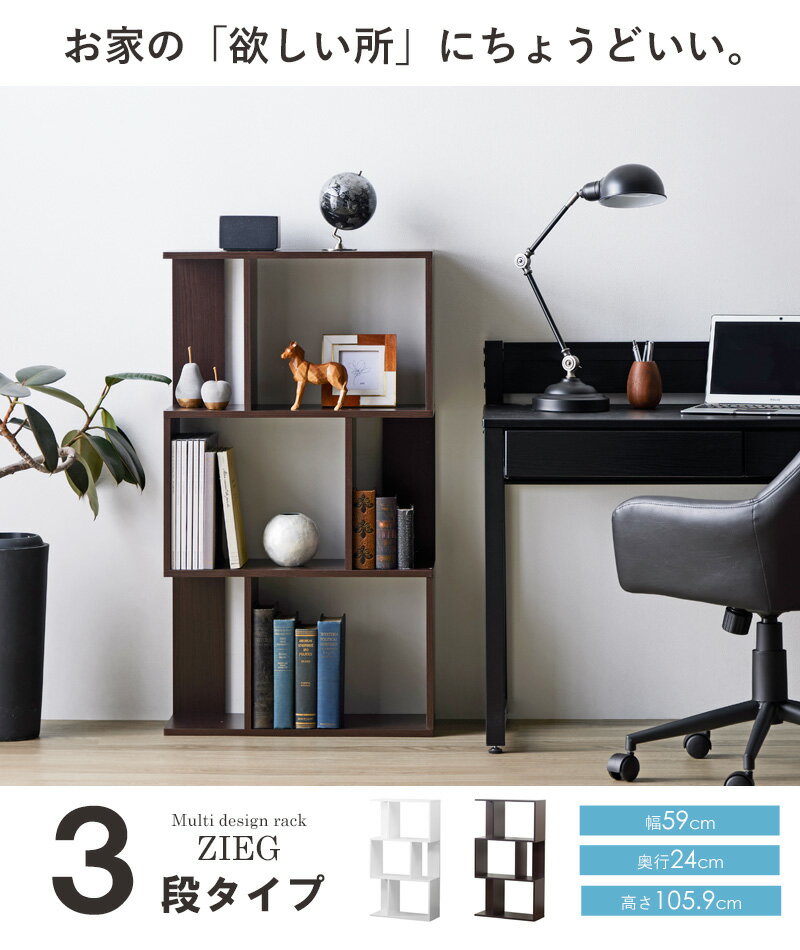 【値下げ】【送料無料】オープンラック 3段 60 ZIEG ラック 本棚 棚 オープンラック ウッドラック 飾り棚 ディスプレイ フリーラック 多目的ラック シェルフ ジグザグ S字 CD DVD 本 収納 北欧 おしゃれ モダン ミッドセンチ |