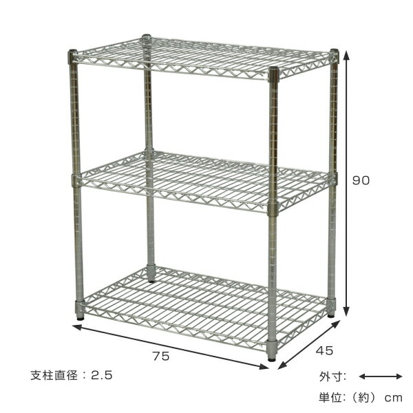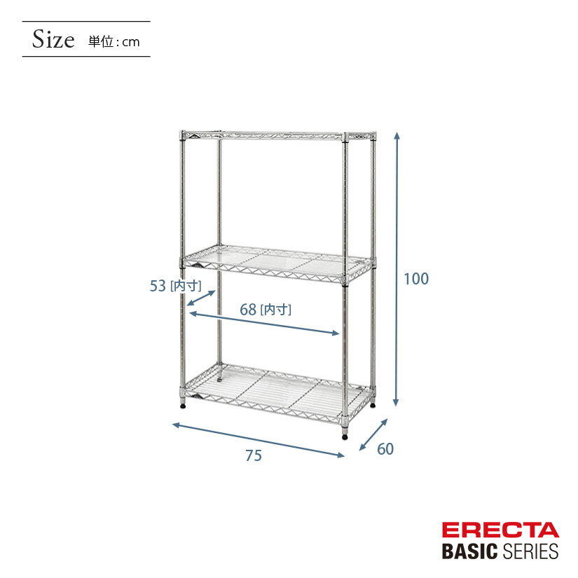 スチールラック 棚 ラック 業務用 頑丈 メタル ラック シェルフ エレクター ベーシック ワイヤーシェルフ エレクター ベーシック フリーラック クローム 幅75×奥行60×高さ100cm 3段 RBR3024403C |