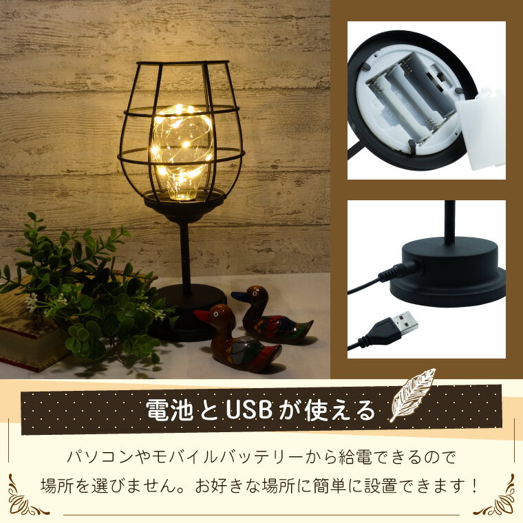 テーブルランプ アンティーク ワイングラス型 USB/電池式 おしゃれ LED 電球色 テーブルライト ライトスタンド ブラック アイアン インテリア 照明 卓上ライト レトロ ヴィンテージ 北欧 かわいい 雑貨 プレゼント |