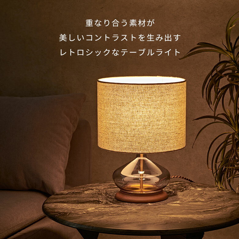 【最大500円クーポン】 テーブルライト スタンドライト テーブルランプ 天然木 木製 ガラス スチール 布 1灯 口金26 60W LED 対応 約 W 25cm D 25cm H 34.5cm 照明 照明器具 卓上 読書灯 テーブル 電球付 ベッドルーム 寝室 ライト おしゃれ 北欧 雑貨 インテリア[94186] |