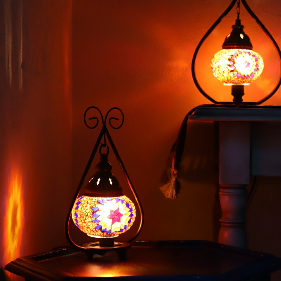 トルコランプ モザイクランプ テーブルランプ 小さめのガラス 高さ25cm 横幅18cm カラフル |