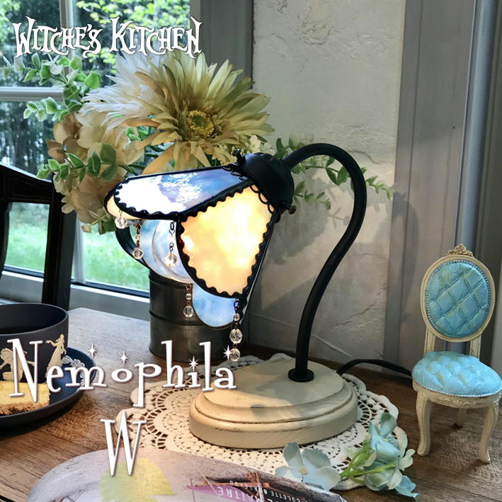 ステンドグラス ランプ スタンド 照明 テーブルランプ グースネックランプ ロマンチック 置き型照明 おしゃれ かわいい リビング照明 間接照明 ギフト プレゼント ハンドメイド LED対応 フラワー ブルー Witche's Kitchen 【 Nemophila ネモフィラ / ミルクペイント 】 |