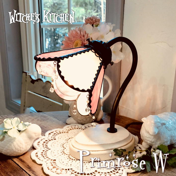 ステンドグラス ランプ スタンド 照明 テーブルランプ グースネックランプ ロマンチック 置き型照明 おしゃれ かわいい リビング照明 間接照明 ギフト プレゼント ハンドメイド LED対応 フラワー ピンク Witche's Kitchen 【 Primrose プリムローズ / ミルクペイント 】 |