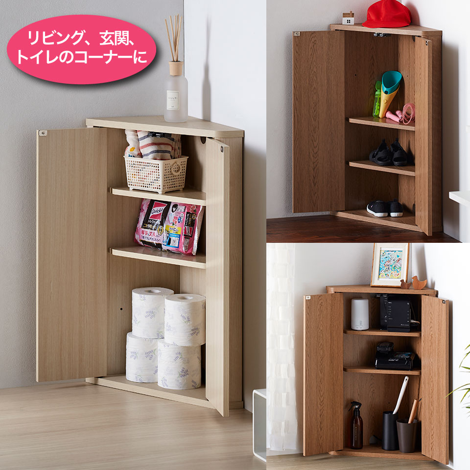 三角形のコーナーキャビネット トライアングルストレージ コーナーラック 幅39 奥行28.3 高さ70 組立品 両開き 玄関収納 トイレ収納 コーナー収納 すき間収納 トイレラック サニタリー収納 ランドリー収納 隙間収納 ホワイト ナチュラル 省スペース スリム 薄型 収納 |
