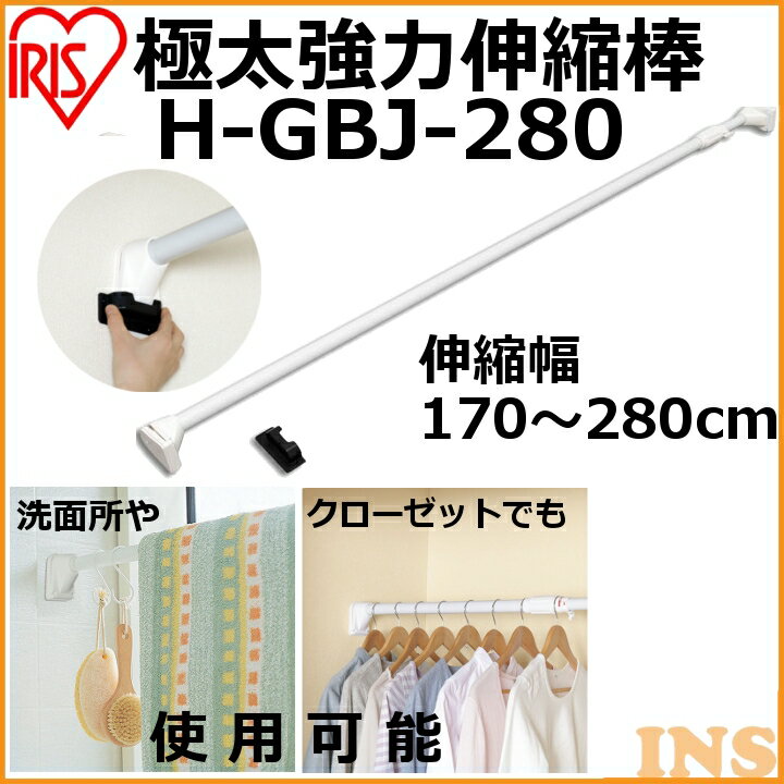突っ張り棒 おしゃれ 長い 強力 つっぱり 極太伸縮棒 ハンガーラック H-GBJ-280 ホワイト幅170〜280cm アイリスオーヤマ バスタオル パーテーション 収納 押入れ トイレ クローゼット 室内物干し タオルハンガー |