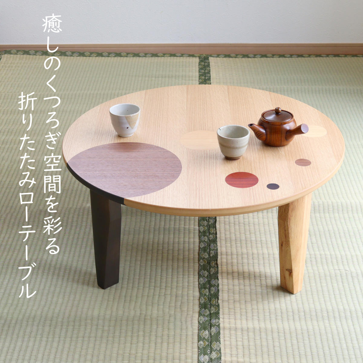 ローテーブル 折りたたみ 円型 直径75cm アース ( ナラ 象嵌入り 突板仕上げ 日本製 和風 円卓 ちゃぶ台 テーブル 天然木 木製 折り畳み 丸 1~2人用 円 ドット バイカラー 食卓 かわいい 和室 リビングテーブル 木製テーブル )【39ショップ】 |