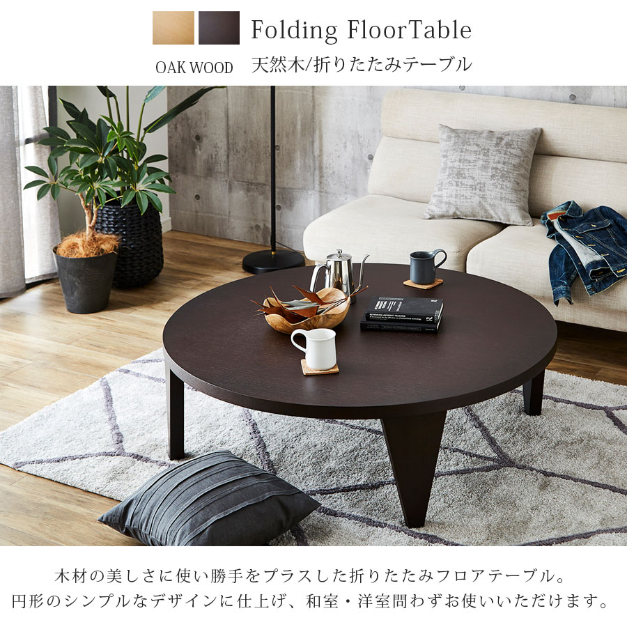 【12/1限定 クーポン配布中1日23:59まで】丸テーブル テーブル 座卓 円卓 幅105 丸形 フロアテーブル 折りたたみ おしゃれ 無垢材 天然木 木製 完成品 オーク シンプル ちゃぶ台 ラウンドテーブル ローテーブル 食卓 リビング 和室 ナチュラル ウェンジ 折れ脚 広い |