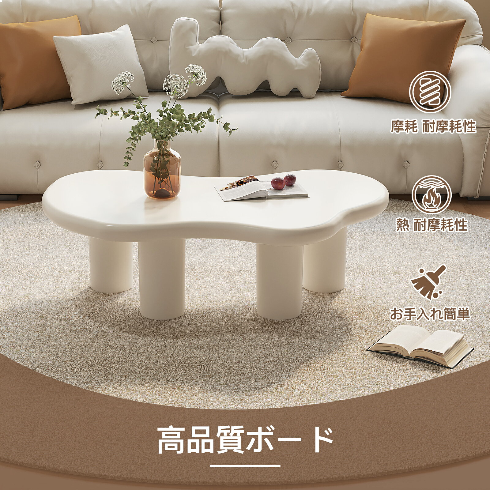 ローテーブル 白 雲型 モダン 白い コーヒーテーブル リビングテーブル 不規則なテーブル かわいい センターテーブル おしゃれ 姫系 テーブル 組立簡単 北欧風 座卓 ちゃぶ台 ホワイト 120cm |
