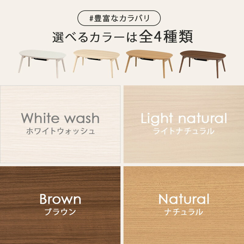 【12/1はポイント10倍★】 \目玉価格★/ こたつテーブル 長方形 90×50cm 折りたたみ 折れ脚 オーバル 楕円形 おしゃれ 木製 北欧 和モダン こたつ コタツ テーブル ちゃぶ台 こたつ リビングテーブル センターテーブル 木製 ナチュラル ブラウン ホワイト 白 arco |