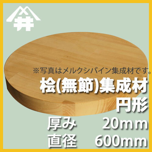 桧(無節)カット集成材(円形) 厚み20mm×直径600mm [長さ・巾 オーダーカット無料!] /天板におすすめ!日本で古代から使用されてきた国産の木材。/無垢桧(無節)集成材/円形/カット不可/天板/ダイニングテーブル/ちゃぶ台/椅子の座面/DIY/日曜大工 |