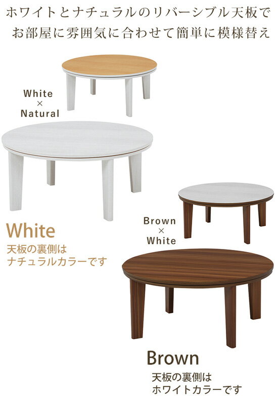 \ページ限定・マジッククロス付/ カジュアルコタツ アベルSE80丸 【送料無料】 [可愛いこたつテーブル 円卓 ちゃぶ台 オシャレ リバーシブル 家具調こたつ 丸形 炬燵] |