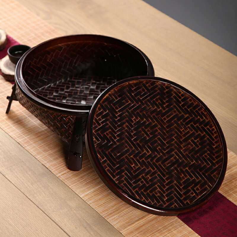 竹編み収納バスケット ちゃぶ台 茶道収納 和風収納 茶器かご 竹製品 卓上収納 竹編みテーブル 手作り 小物収納 竹籠 茶台収納 収納ケース オシャレ 和室インテリア 居間用 ホテル旅館インテリア |