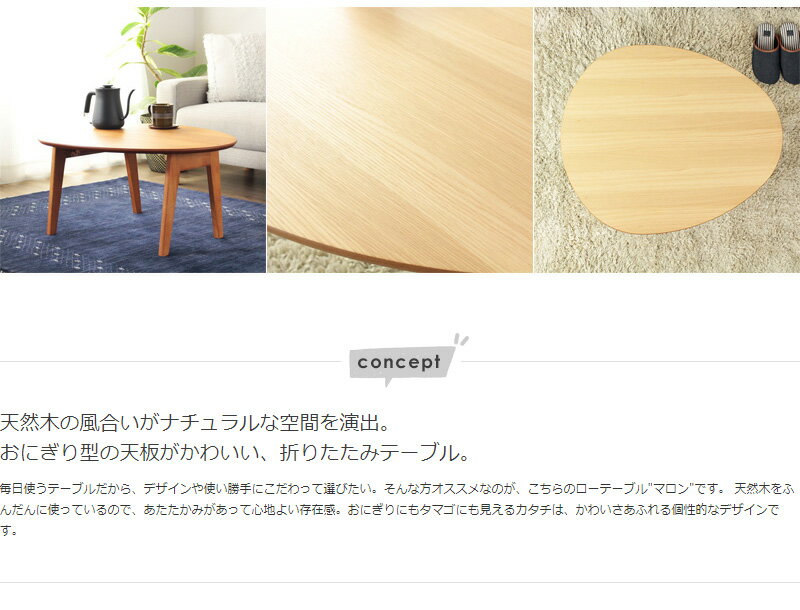 【楽天スーパーSALE10%OFF】リビングテーブル 北欧 おしゃれ おにぎり型 テーブル ちゃぶ台 折りたたみテーブル Marond マロンド オーバル かわいい |