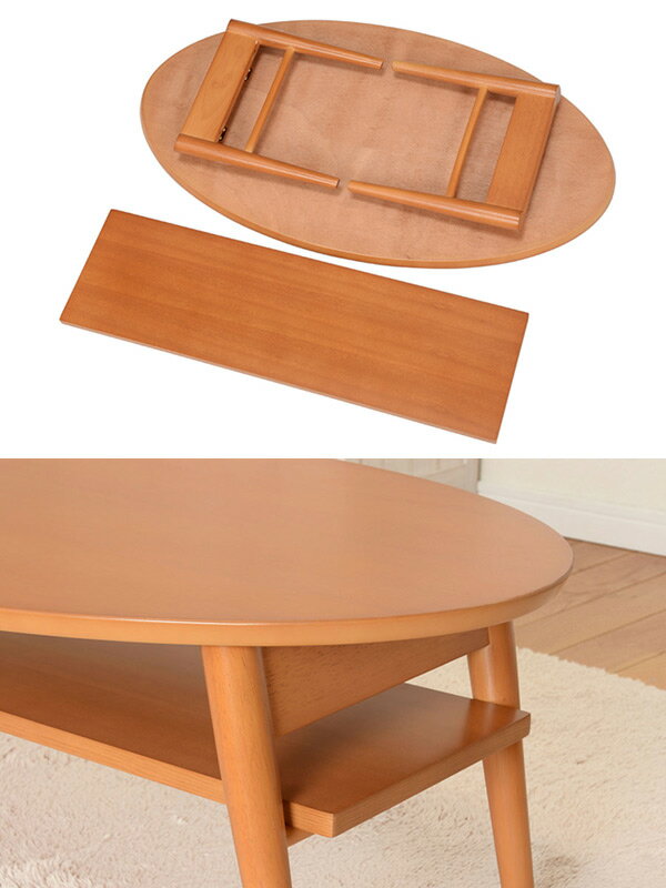 ローテーブル オーバル型 折れ脚テーブル 棚付 幅90cm ( 完成品 天然木 センターテーブル ちゃぶ台 机 折りたたみ テーブル 座卓 table 木製 食卓 おしゃれ dining だ円 )【39ショップ】 |