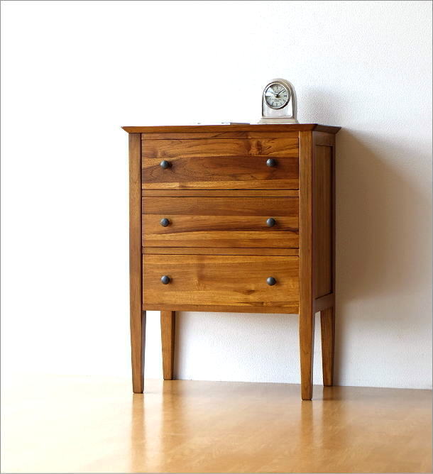 チーク無垢材 サイドチェスト 木製 電話台 FAX台 ファックス台 引き出し収納家具 リビングチェスト 無垢材 天然木 ミニ仏壇台 電話台 ファックス台 FAX台 仏壇台 引き出し 収納チェスト 3段 幅60cm 完成品 送料無料 チークチェスト60 |