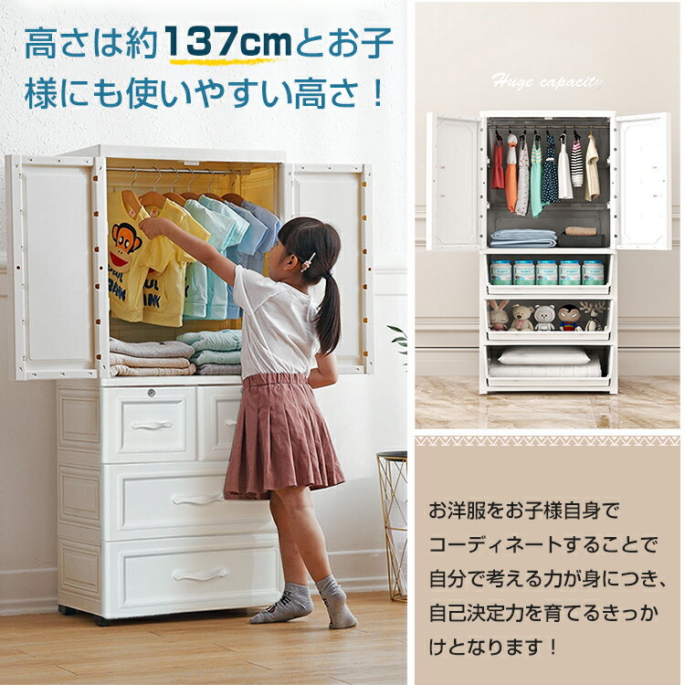 ■半額クーポン!1/30迄■【送料無料】 ワードローブ チェスト 子供部屋 一人暮らし クローゼット 衣装 鍵付き 収納 タンス ハンガーラック 扉 キッズ 新生活 ny482 |