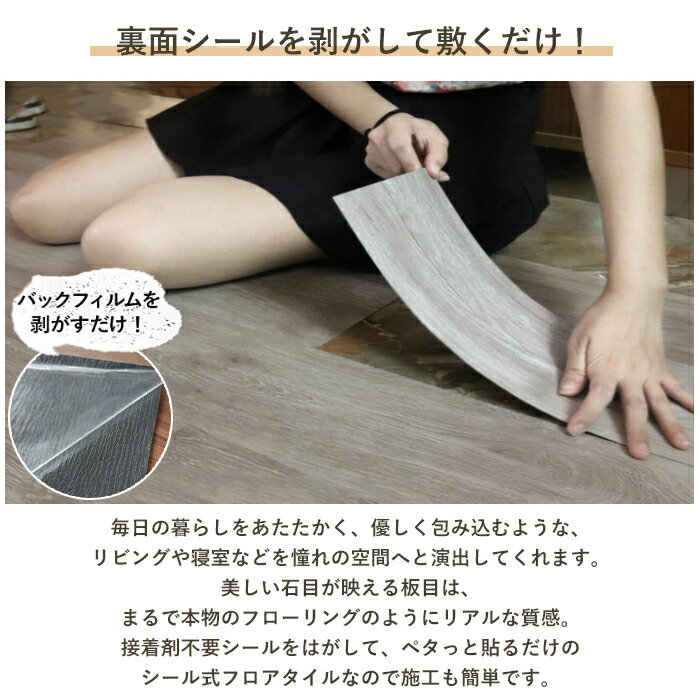 【最大10%OFFクーポン】【72枚セット】貼るだけ 木目調 フロアタイル 接着剤不要 ウッドカーペット 6畳 シール ウッドタイル フロア フローリングカーペット フローリング フローリングマット タイル 木目 ウッド 床材 おしゃれ リフォーム 補修 送料無料 |