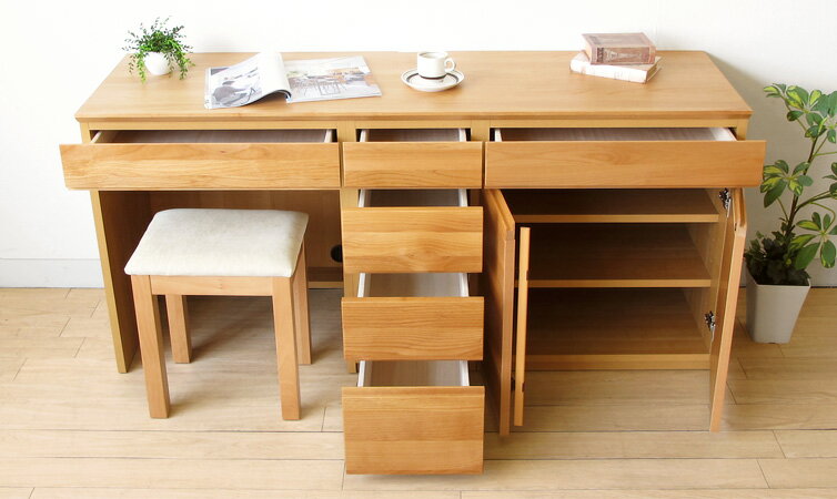 書斎机 パソコンデスクキャビネットと引き出しを組み合わせたユニットデスク 幅150cm ホワイトオーク材 ホワイトオーク無垢材 木製机(※チェア別売) |