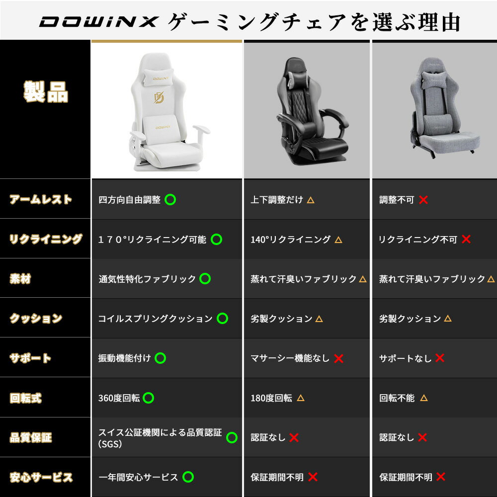 \大感謝祭クリスマス☆最新作特売!クーポンで激安15%オフ!/ Dowinx ゲーミングチェア 座椅子 ファブリック 通気性 肘掛 360度回転 チェア 3Dアーム 振動機能 ランバーサポート 腰痛対策 人間工学 PCチェア ゲームチェア 在宅 |