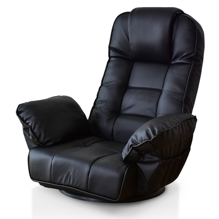 座椅子 ハイバック 回転 高級 ゲーミング ゲーミングチェア ハイバック あぐら座椅子 レバー式 肘掛け付き 回転 ゲームチェアー オフィス 快適 [公式]一畳完結生活「ぐ〜たら極め座椅子」GUZASUSBK |