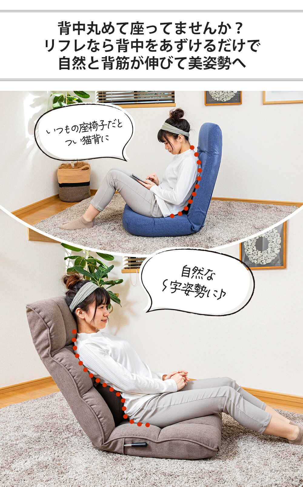 座椅子 refre(リフレ) 腰が整う座椅子 レバー タイプ / 腰痛対策 姿勢サポート ハイバック リクライニング 腰痛 骨盤 美姿勢 腰が楽 腰サポート ストレッチ 腰が伸ばせる レバー 腰痛防止 マッサージ 整体 |