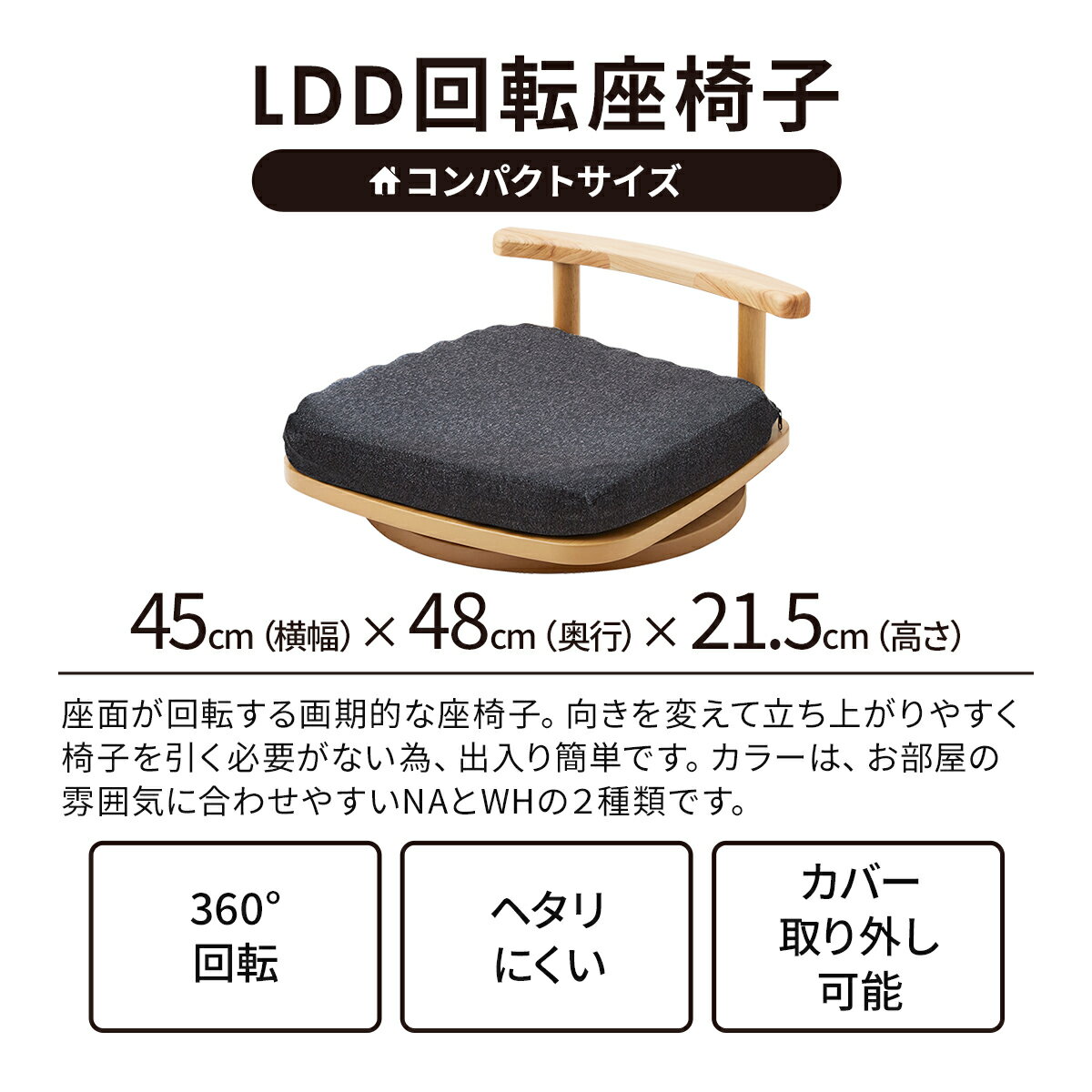 座椅子 回転 回転座椅子 座椅子 低い 肘付き 回る 回転式 椅子 ひのき 白 ホワイト 木製 クッション カバーリング 背もたれ ブラック 黒 一人掛け 360度回転 幅45cm リクライニングなし |